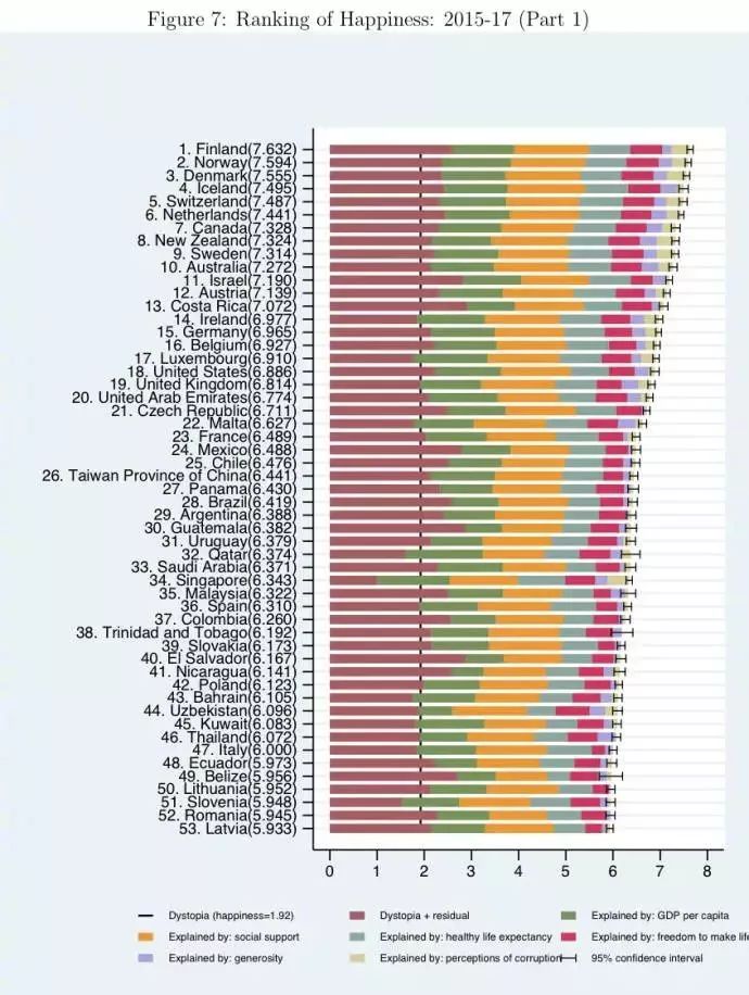 聯(lián)合國發(fā)布全球幸福指數(shù)排名,利比亞比中國更“幸!。在今年的國際幸福日到來之際,聯(lián)合國連續(xù)第六年發(fā)布《世界幸福報(bào)告》,對2015至2017年間全球156個(gè)國家和地區(qū)人民的主觀幸福感水平以及117個(gè)國家和地區(qū)移民的幸福感水平進(jìn)行了綜合排名。中國大陸今年排86位,比去年(79)略有下滑。令人意外的是,利比亞以排名70的名次躍居中國之前。