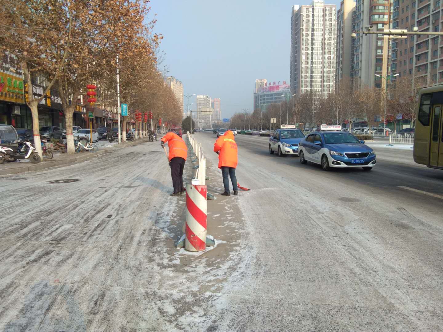 不畏嚴(yán)寒,清掃路面積雪