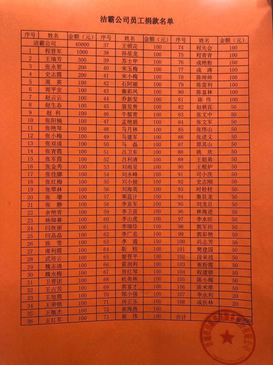 為避免疫情期間大規(guī)模聚集,公司捐款活動(dòng)采取微信轉(zhuǎn)賬形式進(jìn)行,僅僅一天多時(shí)間,共募集善款一百余筆,累計(jì)金額10890元。加之公司捐助的40000元,共計(jì)50890元。現(xiàn)已統(tǒng)一轉(zhuǎn)入晉城市紅十字會(huì)賬戶,定向捐助晉城市第二人民醫(yī)院用于疫情防控工作。