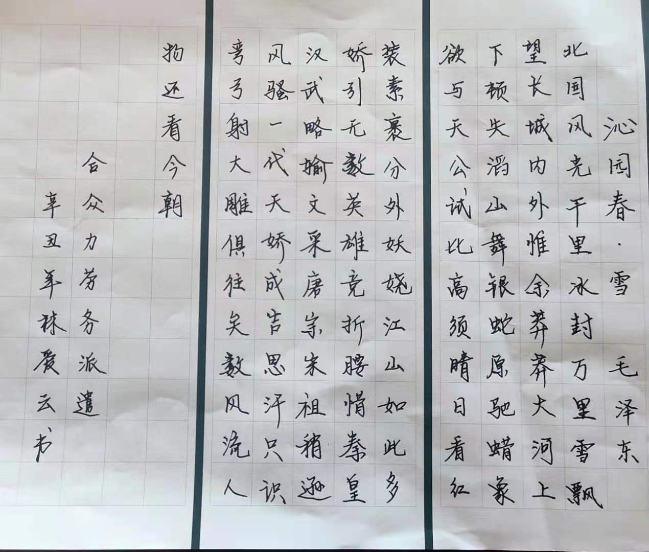 本次硬筆書法比賽活動圍繞“喜迎建黨百年華誕”主題,以摘抄歌頌黨、歌頌祖國、歌頌企業(yè)的詩詞、散文、歌賦等為書寫內容,參賽選手個個滿懷激情,用心書寫每一個漢字,筆畫流暢,結構勻稱,整體美觀,表現(xiàn)出良好的書寫功底。公司組織相關人員對參賽員工的作品進行客觀公正的評審,評選出一、二、三等獎若干名。