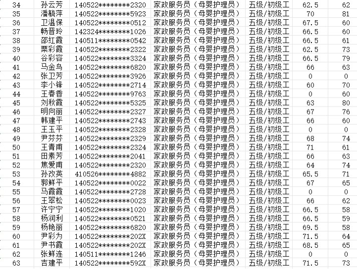 晉城市潔霸清潔服務(wù)股份有限公司職業(yè)技能等級(jí)認(rèn)定中心認(rèn)定人員成績(jī)公示