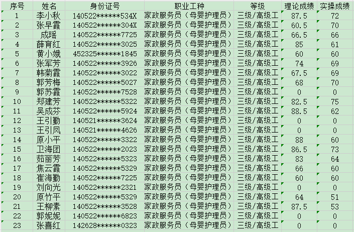 2024520日上午第13批家政服務員高級認定人員成績公示