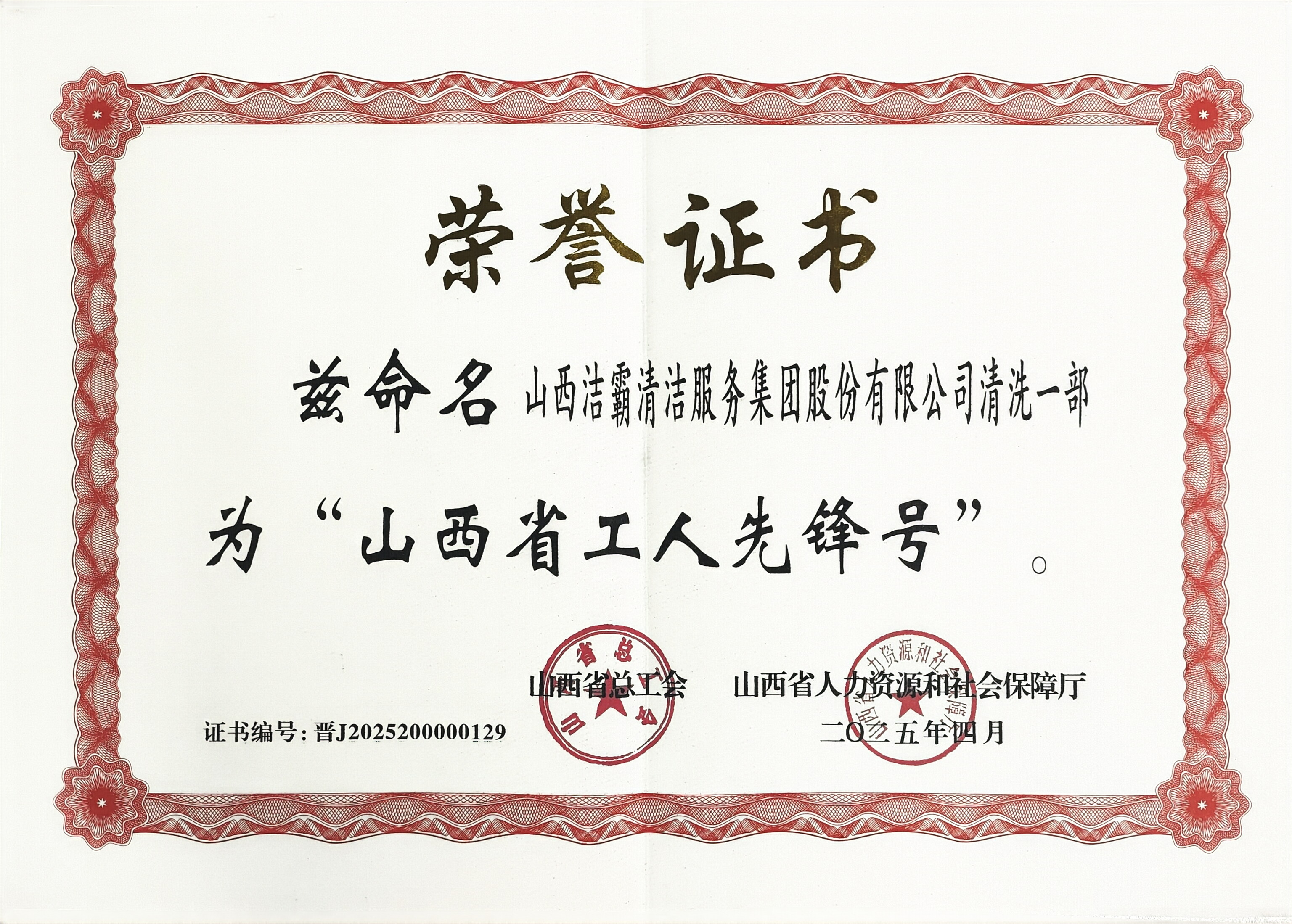 4月30日,山西省五一勞動(dòng)獎(jiǎng)表彰大會(huì)在太原隆重舉行。我公司清洗一部榮獲“山西省工人先鋒號”榮譽(yù)稱號。